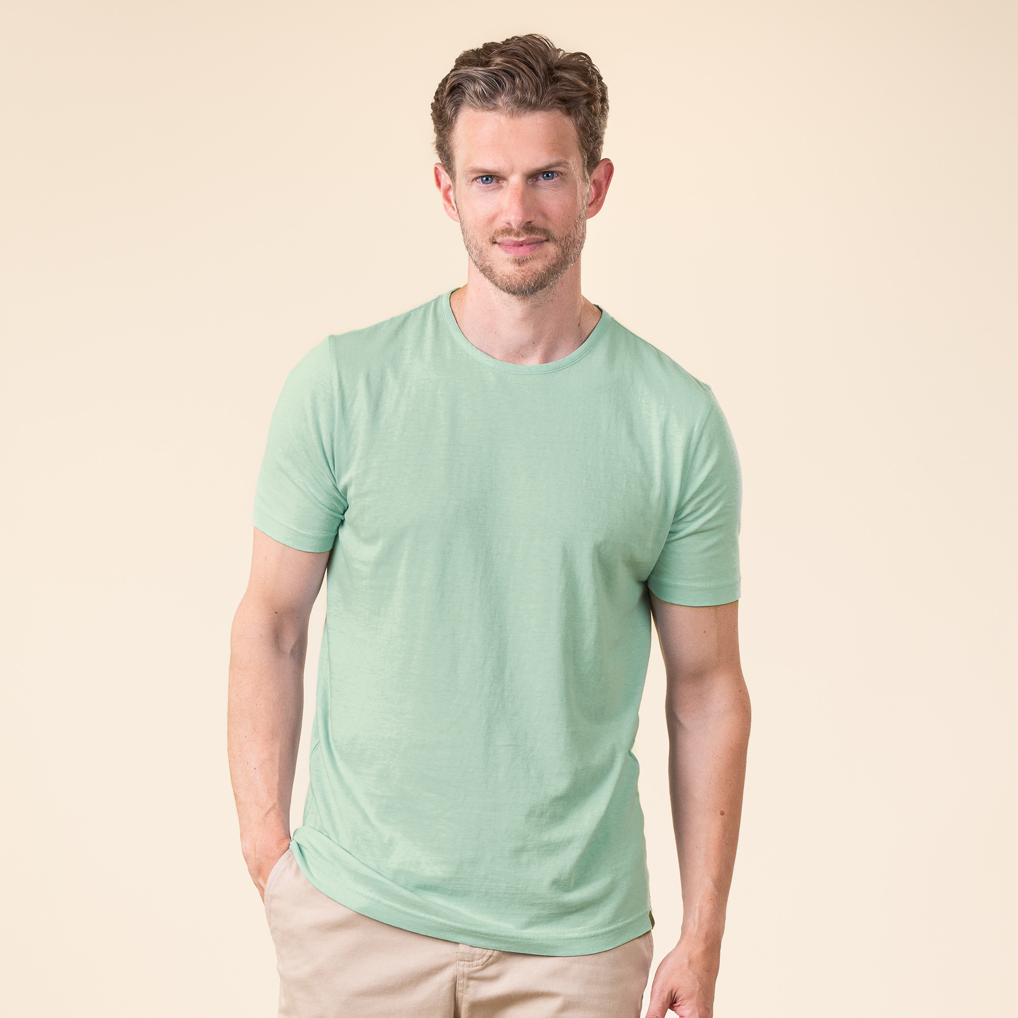 Tkanina je mehka, zračna in prijetna na dotik. Omogoča dobro kroženje zraka ter pomaga uravnavati telesno temperaturo skozi vse leto.