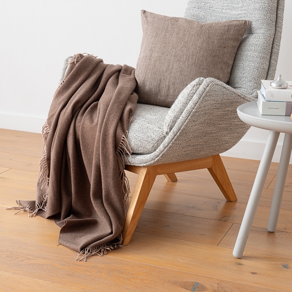Priročna odeja iz 100% izjemno fine in mehke merino volne, je brezčasno privlačna. Topla in mehka za idealno poležavanje in dremanje na kavču.