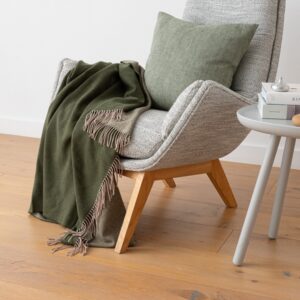 Priročna deka iz 100% izjemno fine in mehke merino volne, je brezčasno privlačna. Topla in mehka za idealno poležavanje in dremanje na kavču.