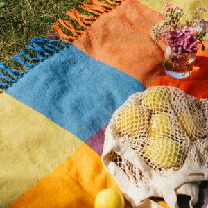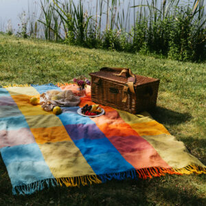 Barvita odeja iz 100% ekološkega bombaža. Zračna in lahka.