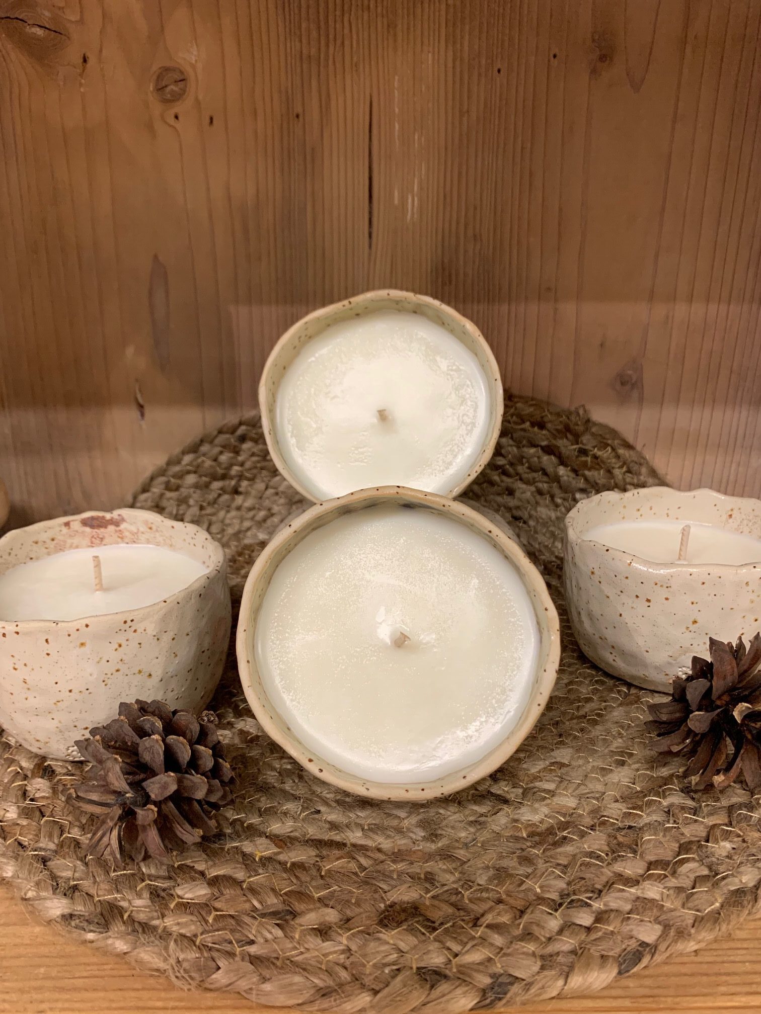 Sveča v ročno izdelani keramični posodi je nrejena iz soja voska, kateremu je dodano dišavno olje “Šepet gozda”. Sveča bo vaš prostor odišavila s prijetno dišečo kombinacijo borovih iglic, bergamotke in tonke. Posodica vsebuje približno 200g. soja voska, kar omogoča čas gorenja vse do 40 ur. Premer keramične posode je cca. 8 cm., višina le te pa je cca. 6 cm.
